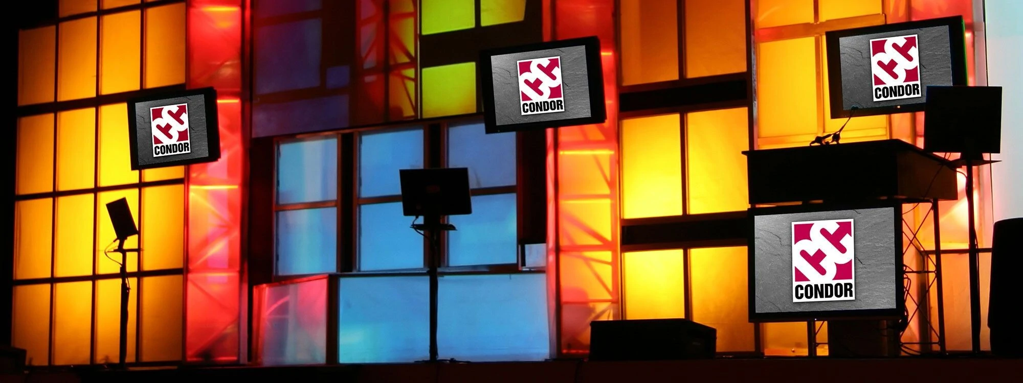 Imagine making one call to manage your event AV and lighitng, your venue space branding and signage AND your gala slide presentation and closing video montage, all under one roof? Let Condor bring a creative and consistent look to your entire event—and have it all arrive on one truck! The more services you purchase, the greater your discount, and the more time and money you save.